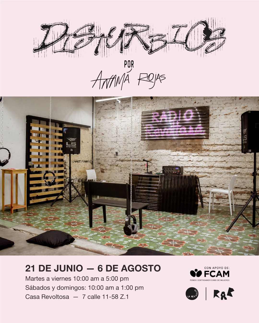 Exposicion de arte de la artista costarricense Anamá Rojas. Además, se realizará una visita guiada el 11 de julio a las 16:00 horas en la Casa Revoltosa.
