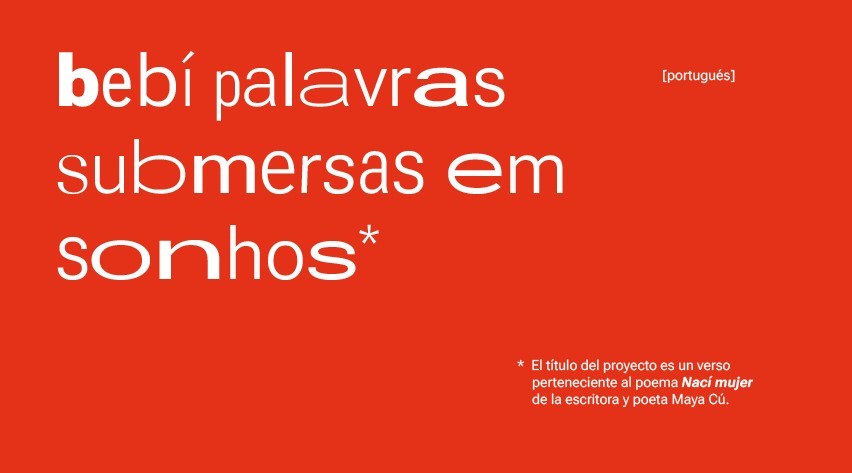bebí palabras sumergidas en sueños es un fragmento de un poema de Maya Cú, una de las referentes de la poesía maya en Guatemala, cuyo cuerpo de obra representa la búsqueda de la identidad estableciendo una genealogía femenina y una herencia en resistencia. Sus versos acompañan la construcción de este proyecto, cuyos temas, ideas, participantes y estructura han ido tomando forma en un proceso de trabajo colectivo con una asamblea curatorial convocada por Francine Birbragher-Rozencwaig y Juan Canela y conformada junto a Minia Biabiany, Marilyn Boror Bor, Duen Sacchi y Juana Valdés. A partir de las primeras intuiciones compartidas, las distintas conversaciones y encuentros se han ido trenzando alrededor de las vinculaciones existentes entre lengua, cuerpo y territorio. Escritura, oralidad, relato, corporalidad, presencia, movimiento, comunidad, territorialidad, paisaje, naturaleza, o comunidad son algunos conceptos que emergen a partir de esas relaciones, articulando narrativas que desafían relatos hegemónicos, e imaginando futuros que ahondan en posibilidades de vidas en común.