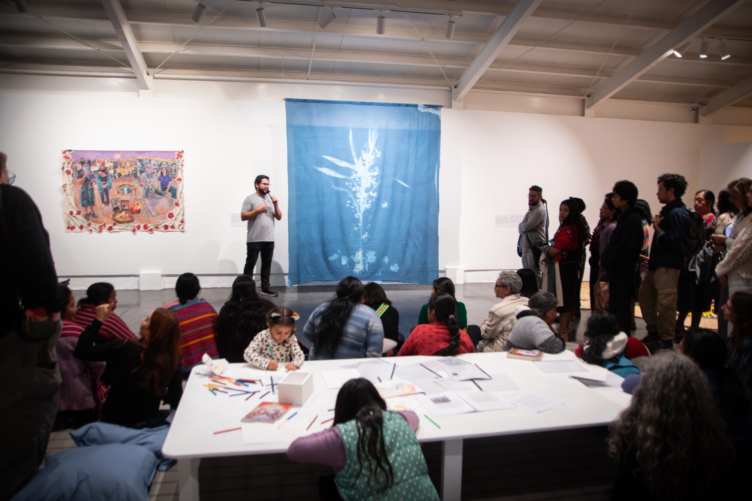 Por su parte, la obra Love Letter, de David Bianchi está elaborada con lápiz de color sobre papel MD, y está compuesta por 12 dibujos individuales colocados entre placas de vidrio, como si fueran ventanas a una escena natural. La escena proviene de una fotografía tomada por la abuela de Bianchi en los años 60 desde el cráter del Volcán de Agua, en Guatemala, en la que también se alcanzan a ver los picos de los volcanes de Fuego y Acatenango. A partir de ese archivo familiar, David construye una obra que no solo honra la memoria de su familia, sino que también reflexiona sobre el paisaje como una forma de identidad.
