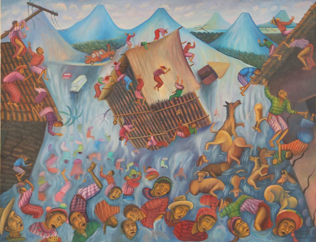 Dos años después del furioso evento natural se celebró la XII Bienal de Arte Paiz y el pintor Diego Isaías Hernández Méndez encontró oportunidad para narrar los estragos de aquel hecho natural en su comunidad. Originario de San Juan La Laguna, Hernández Méndez presentó la pintura Destrucción del Mitch en Guatemala, donde recrea la furia del viento desatando un caos sobre el lago de Atitlán y afectando a los pobladores de la zona.