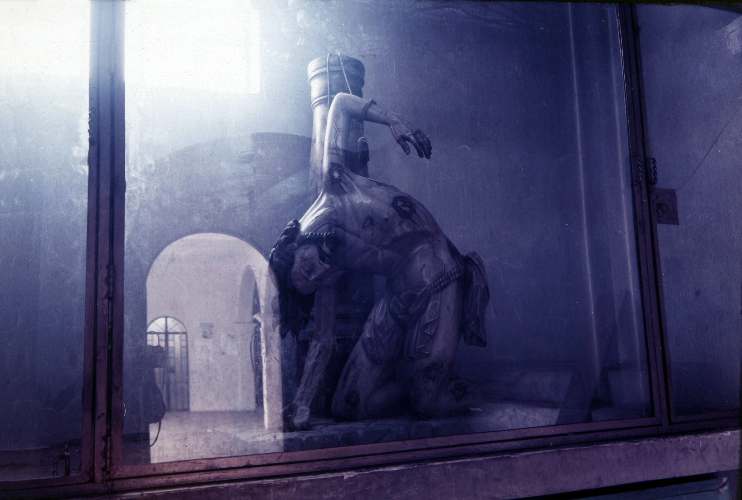 Lejos de la urbanidad, otras historias atípicas que encuentran su lugar en el acervo fotográfico de la Fundación Paiz se vinculan a los ritos y la espiritualidad. Ganadora del Glifo de Oro en la VII Bienal, celebrada en 1990, la imagen Recuerdo de San Andrés Iztapa ofrece una perspectiva distinta de la representación de Jesucristo durante su Pasión. La fotografía, capturada por la italiana Paola Ferrairo dentro de la iglesia en el municipio de Chimaltenango y que juega con tonalidades azules, nos lleva hasta un espacio ajeno a lo urbano, invadido por una sensación de misterio.