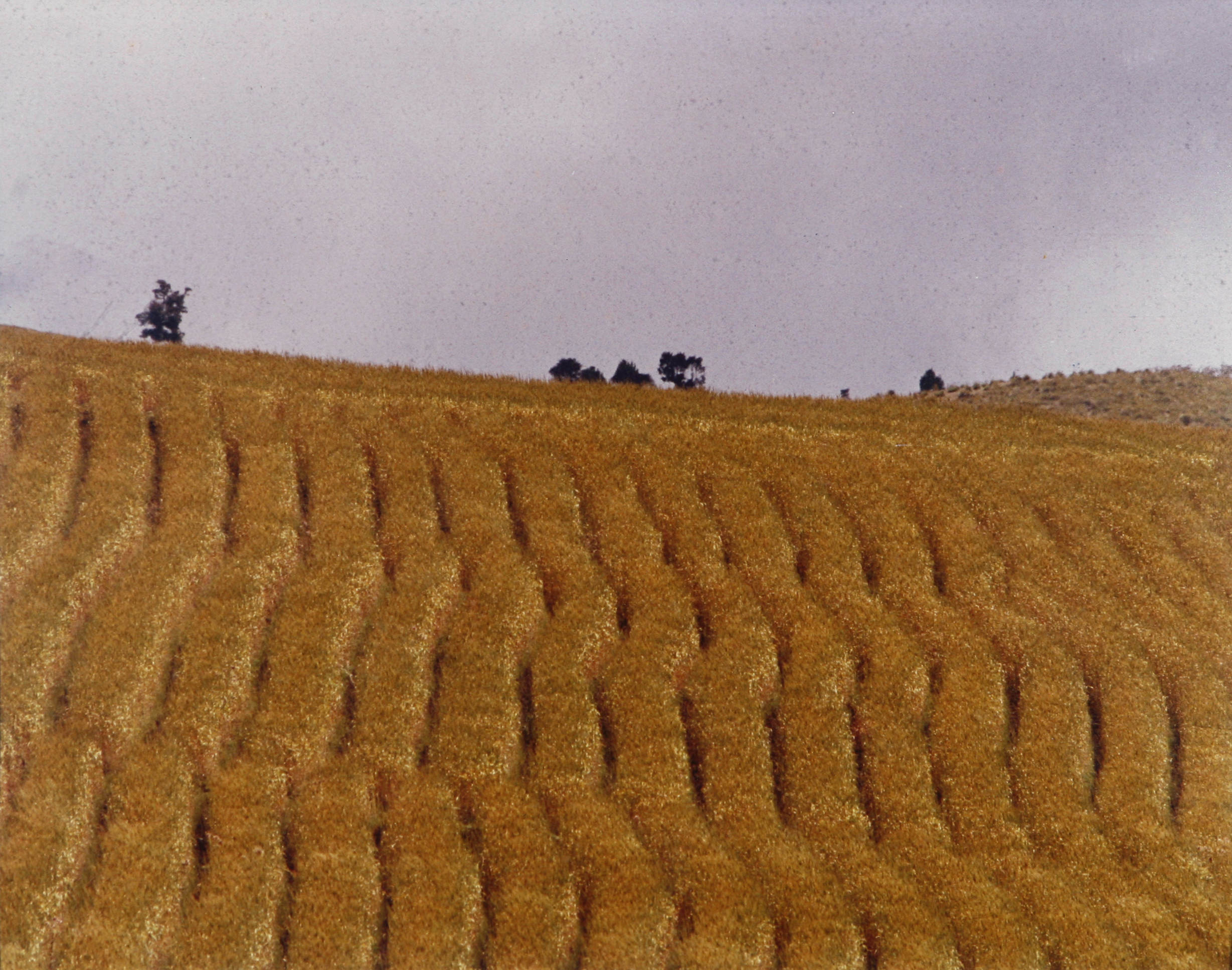 Imágenes como las capturadas por la suiza Anne Girard de Marroquín nos permiten conocer más sobre las formas naturaleza de Guatemala. Una de las fotografías de la autora, pertenecientes a la Colección de Arte Paiz, es Trigales de Quetzaltenango, donde captura una inmensa plana de tonalidades marrones donde aparecen surcos que evidencian la plantación de trigo en el occidente guatemalteco.